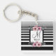 Black & White Stripes Pink Floral Monogram Key Ring