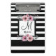 Black & White Stripes Pink Floral Monogram Mini Clipboard