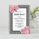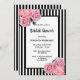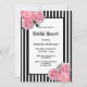Black white stripes pink florals Bridal Shower Invitation