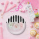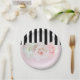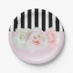 Black & White Stripes Pink Roses Bridal Shower Paper Plate