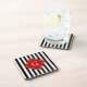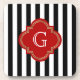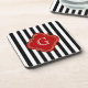 A classic, stylish, chic striped pattern in black and white. Customise your red monogram label.