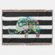 Black & White Stripes Retro Floral Elephant Throw Blanket