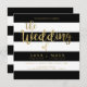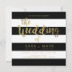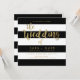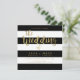 Modern square wedding invitations with black & white striped background with gold foil effect font.