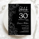 Black White Surprise 30th Birthday Invitation. Minimalist modern feminine design features botanical accents and typography script font. Simple floral invite card perfect for a stylish female surprise bday celebration. Printed Zazzle invitations or instant download digital printable template.