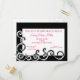 This fun invitation is swirls in black and white and accented with pink text in the interior frame.