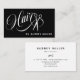 Black White Swirly Script Scissors Hair Stylist Business Card