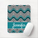 Black White Teal Bold Wavy Stripes Mouse Pad