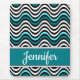 This bold, beachy design features eye-catching abstract geometric ocean waves in black, white, teal and aqua or turquoise, along with a black and white edged teal ribbon bearing a customisable name in white in popular script typography. You can personalise this item for yourself or a loved one by changing the name.