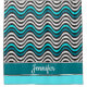 This bold, beachy design features eye-catching abstract geometric ocean waves in black, white, teal and aqua or turquoise, along with a black and white edged teal ribbon bearing a customisable name in white in popular script typography. You can personalise this item for yourself or a loved one by changing the name.