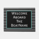 Perfectly chic, and classic black and white with teal detail Welcome Aboard The _________ doormat for your boat of marina slip customisable with your boats name