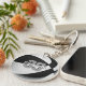 This basketball team colours acrylic keychain for girls or boys features the realistic image of basketball that has recolored alternating black and white panels upon which you can easily customise the athlete's name in a signature (or autograph) style font atop the player's jersey number (in a varsity letter style font) - by katz_d_zynes
