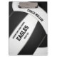 This volleyball team colours clipboard for a girl's or boy's volleyball coach features the image of an abstractly oversized black and white volleyball upon which you can customise coach's name plus the school and mascot name and school year/season - by katz_d_zynes
