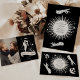 Adorned with the iconic imagery of "The Lovers" tarot card in striking black and white, this RSVP card sets the tone for a wedding celebration filled with passion and destiny. The intricate details of the card, including the intertwined figures and celestial backdrop, evoke a sense of eternal love and cosmic connection.