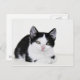 A adorable postcard with a cute black and white kitten thoughtful. You can personalise with your own special text, font and colour. Other products with this design can be found in our shop.
