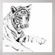 Painting of a white bengal tiger in black ink on against a white background.