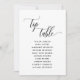 Elegant top table seating plan card with beautiful modern handwritten calligraphy details. Double-sided card, allowing guests to look at their names from both the front and back. Clear space all around gives you the liberty to use clips or punch holes for hanging displays, or use table holders or frames. White background and text in black. Ability to change the background colour to another colour by selecting "Customise further". You may edit the design. Please apply any changes to both front and back. A matching card with a template for the rest of the table numbers and guest names is also available. Part of our "Modern Elegant Wedding and Events Signage" collection, with a variety of coordinating products available.