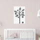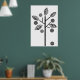 Black white tree on white background, featuring an elegant tree with dotted and lined leaves and fruit in B&W minimal style.