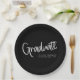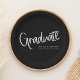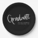 Black and white trendy casual script graduation paper plates. These paper plates feature a trendy script with a black and white theme. Customise the text with the graduates name and high school. Visit my black and white graduation collection to view all coordinating items.
