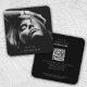 Black & White Trendy Stylish Full Photo QR Code Square Business Card