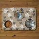 Keep the food and water bowl together on this custom design mat featuring a black and white turtle pattern over a sandy texture background with YOUR pet's photo and name. Replace the photo with your pet photo and personalize or remove the template field with your pet's name. A great idea for your home or as a custom gift idea for a new pet owner.