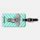 Bohemian style tribal patterned elephant luggage tag with white chevron background and name.