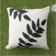 Black & White Tropical Outdoor Pillow. Large. Tropical foliage.