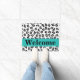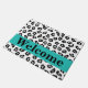 Welcome visitors to your home with this stylish and sophisticated black and white leopard skin pattern door mat. This door mat is customised with the word Welcome that you can change to another word or name. A turquoise teal blue strip gives an area for personalisation and a pop of colour. Enjoy this popular and contemporary design that will add a trendy home decorative accent. This leopard design is available in several colour combinations in this store.
