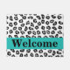 Black White Turquoise Leopard Skin Pattern Welcome Doormat
