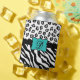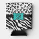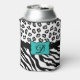 Black White Turquoise Zebra Leopard Skin Monogram Can Cooler