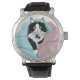 Black White Tuxedo Blankets Cat Blue Pink Watch