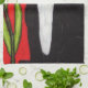 Black White Tuxedo Cat White Daisies Red Tea Towel