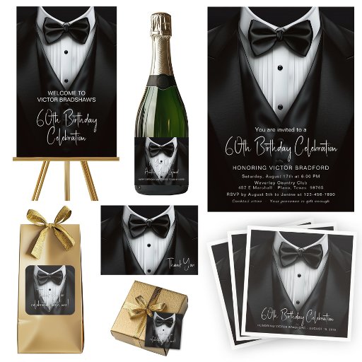 Black White Tuxedo Mens Any Number Birthday Invitation
