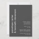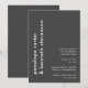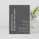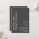 This wedding invitation features the couple's full names running vertically up the left side in bold white lowercase lettering on a black background, with the date, venue, and wedding details in clean type on the right. A really distinctive, modern look for a couple who wants something that stands out.