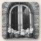 Black & White view of window and flower pots Coaster