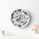 A modern black and white floral wall clock featuring a vintage floral display of vintage floral botanical drawings with delicate floral details on a pure white background. Large and easy to read black highlight numbers, and a special inner minute hand dial with numbers from 1 to 59. Minute and second hands can be changed to white if required.