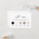 The palette includes soft black, warm ivory, stone greige, taupe grey, and champagne beige — timeless tones that photograph beautifully and complement any elegant wedding setting.