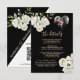 Romantic and unique black and white floral Wedding Details Enclosure card. Gold lettering and touches of calligraphy are a perfect accompaniment to the beautiful flowers along with the lovely photo. For any design question or additional customisation and / or matching items, just send a chat or an email to charmdesignstudio@rcn.com and we'll be delighted to assist.