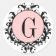 Elegant Parisian Chic Pink Black and White Monogram Stickers with Damask Design. Art and Design by Elke Clarke ©2010.Customise with your monogram initial and wedding colours.