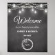 Black White Welcome Sign Banner Poster for rustic barn wedding with string lights, mason jar and monogram. If you need a different size, paper style, choose the same under size and style option.