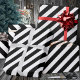 A black stripe holiday wrapping paper featuring black wide stripes on white on the diagonal.