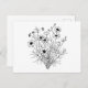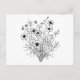 Black White Wildflowers Line Art Postcard
