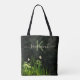 Black white wildflowers monogram name script tote bag