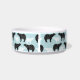This is a heavy, durable bowl decorated with Tibbies of many colors, the perfect size for hungry/thirsty Tibs. The design is interesting and printing clear.