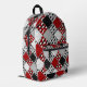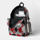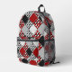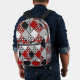 Black white with red retro patchwork printed backpack
