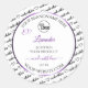 Make a lasting impression with this elegant and luxury product label design featuring a black and white word cloud border with a shimmery purple frame.