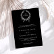 Black background, white wreath and text. Personalise and add your monogram initials, names, and details.