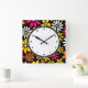 Black white yellow and pink Flower pattern Square Wall Clock