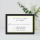 Stylish wedding RSVP response card done in white, with a black and pale yellow frame around the outside. The back is done in solid black. Personalise all the text front and back to suit your wedding needs. Perfect match with our Football themed black, white, and pale yellow wedding invitation set.