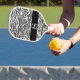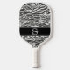 Black White Zebra Animal Pattern Initial Monogram Pickleball Paddle
