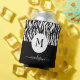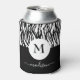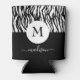 Black White Zebra Animal Print Monogram Name Chic Can Cooler